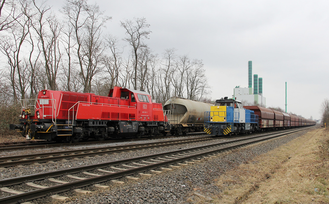 Zwischen zwei Bremswagen wurde 275 821 am 24.06.18 von Rackwitz nach Bitterfeld überführt. Sie war in Rackwitz bei Rangierarbeiten über den Prellbock gefahren. Martin Schneider