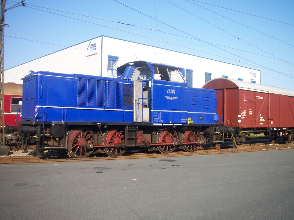 V2.004 (Mak 600D) vom Verein Braunschweiger Verkehrsfreunde als Leihgabe bei der Landeseisenbahn Lippe, am 12. September 2010 im Bahnhof Lemgo beim Umsetzen in Richtung Dörentrup Benno V.