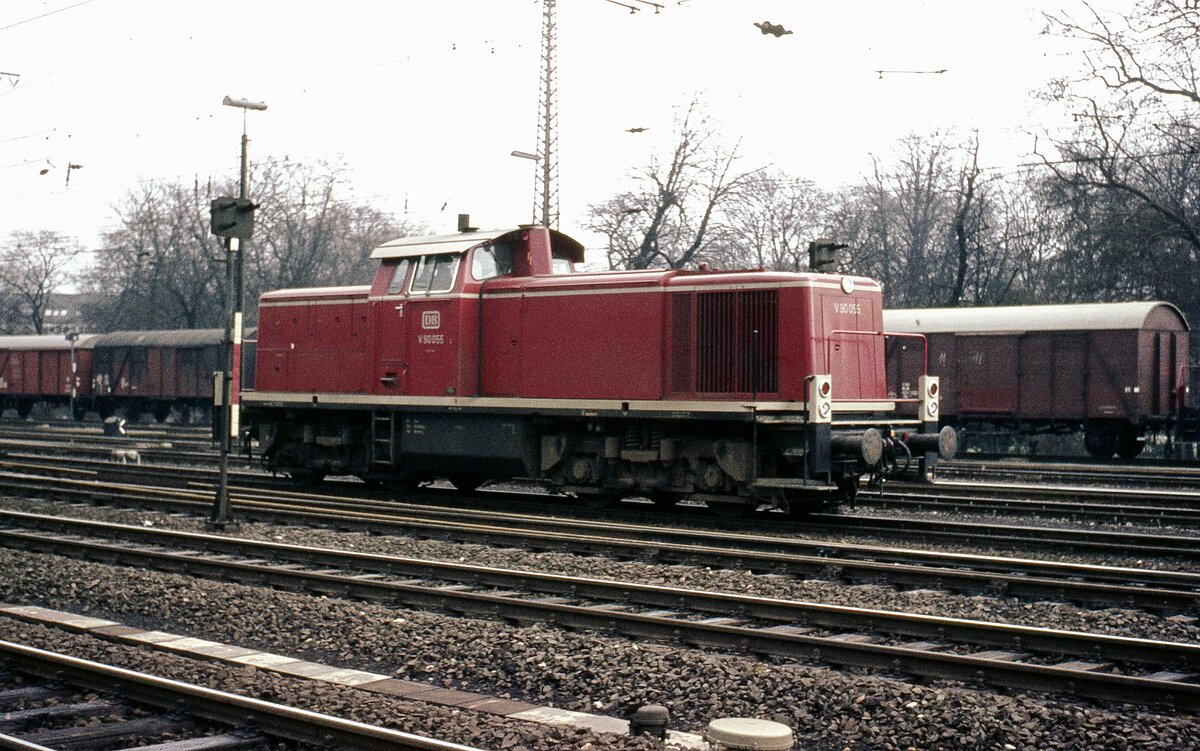 Zum Aufnahmezeitpunkt rangierte die altrote Museumslok 290 371-4 (DB V 90) des Öfteren in der Zugbildungsanlage (ZBA) Halle (Saale). Vom Ablaufberg kommend, fährt sie nun zu den Richtungsgleisen.