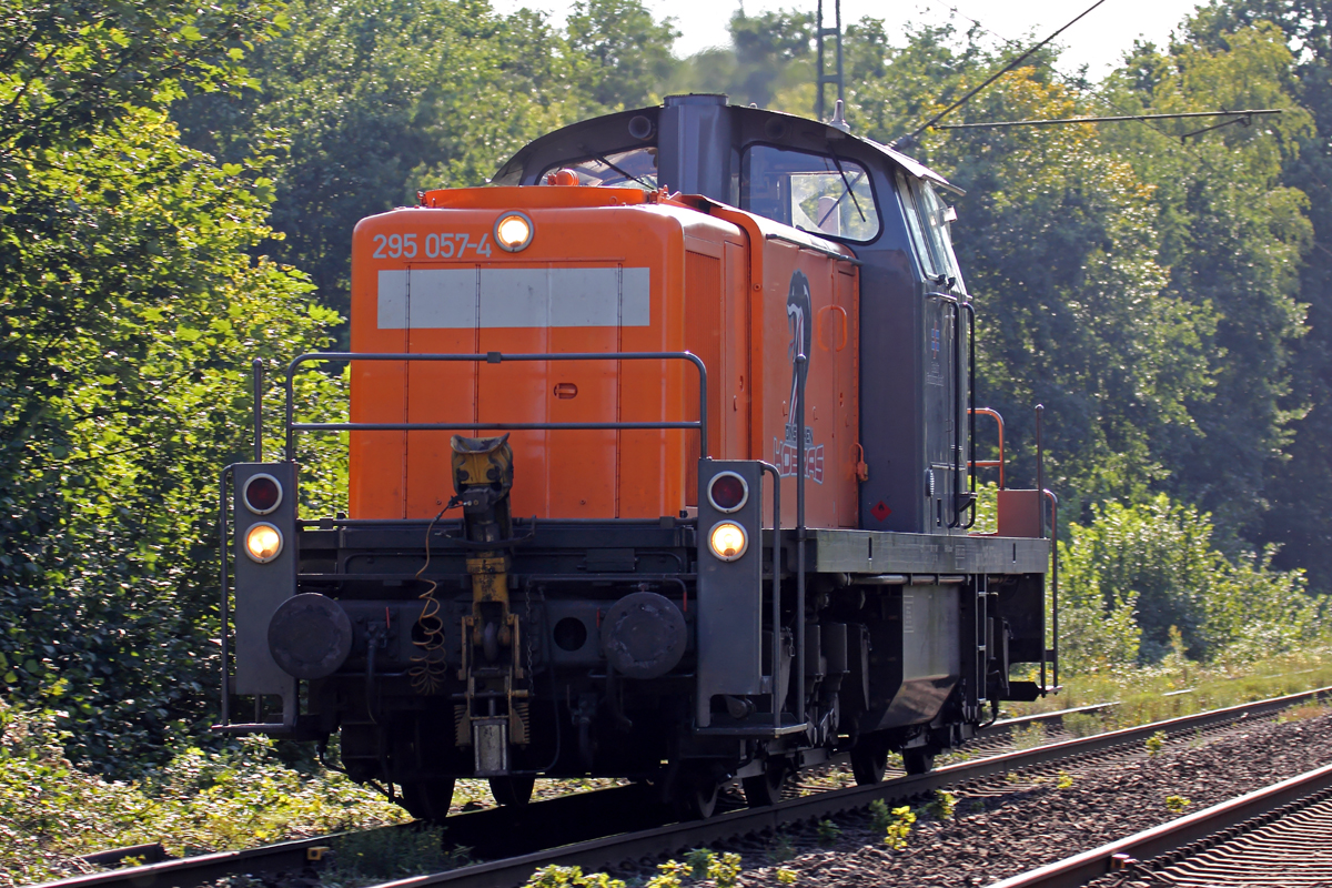 Am 10.07.15 zog die bei der OHE eingesetzte 295 951 den freitäglichen Müllzug nach Stassfurt durch Wellen Richtung Magdeburg. Bei der OHE trägt sie die Nummer 160074. Martin Schneider