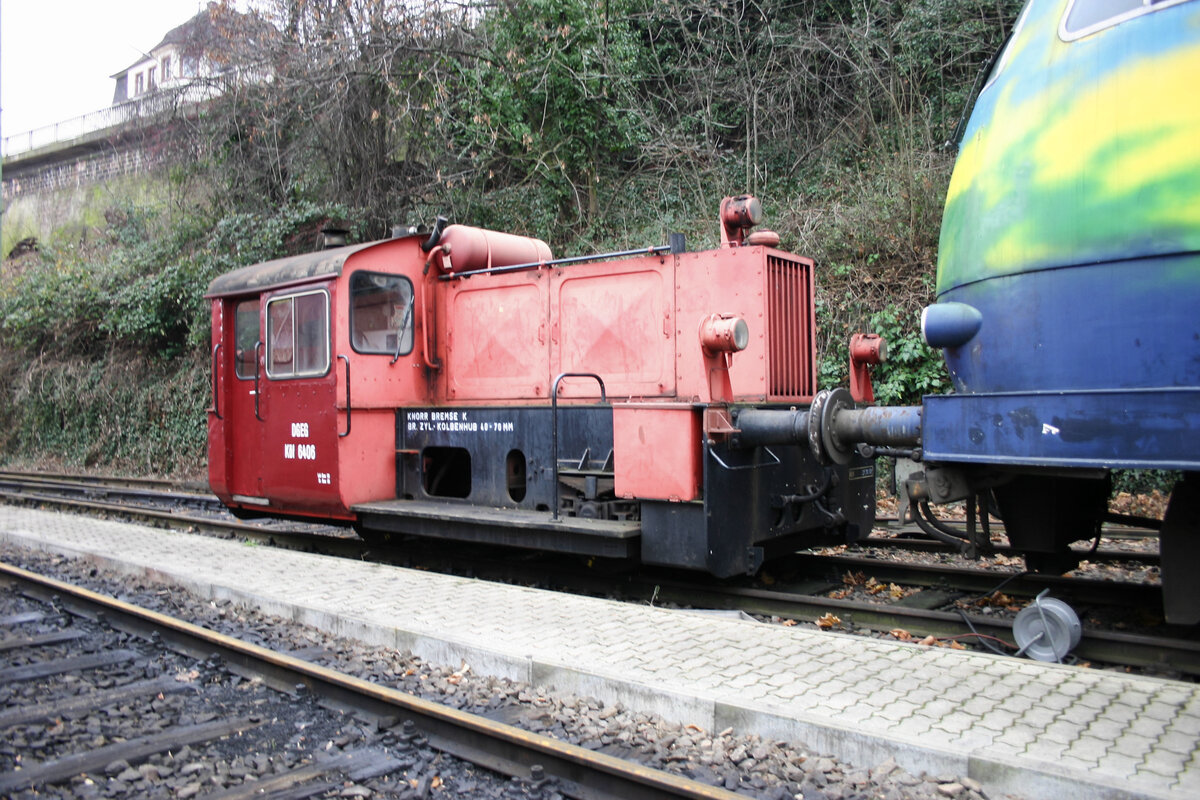 Am 19.12.2015 stand 323 462 bei der HEM in Mannheim-Friedrichsfeld. Die Kleinlok der Lg. III wurde 1938 von O&K an die DRB als Kö 4926 geliefert. Nach Einführung der Computernummern erhielt die Lok die Nummer 321 233 und nach einem Umbau 1968 die endgültige Nummer 323 462. Bei der DB wurde sie 1979 z-gestellt und noch im gleichen Jahr ausgemustert. Quelle der Daten: "deutsche-kleinloks.de"! Ernst Lauer