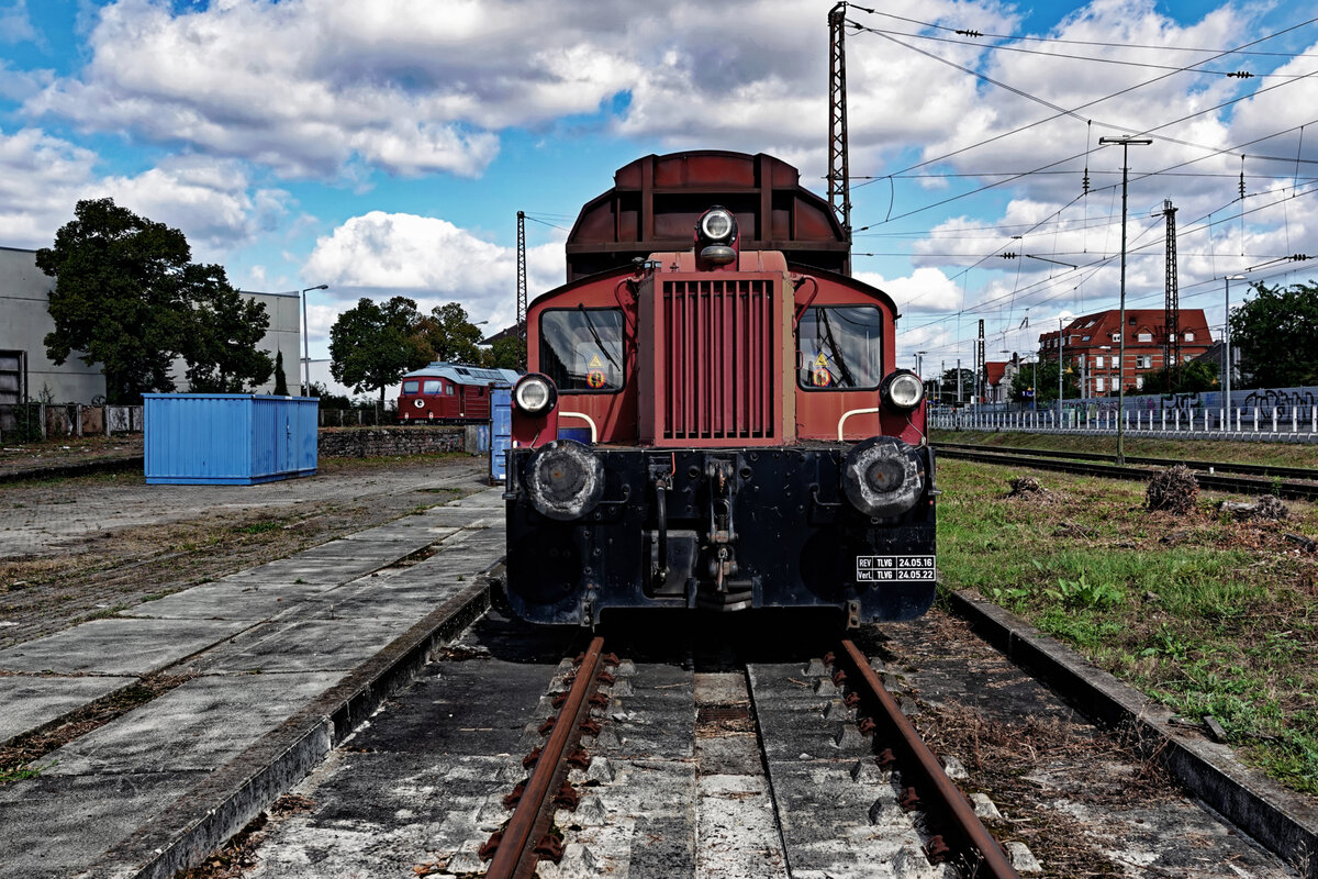 Ex DB-Kleinlok der Lg. II 323 351, 1984 ausgemustert und seit 1988 bei der EVG, am 07.04.2024 bei der Eifelbahn Verkehrsgesellschaft in Linz am Rhein. Ernst Lauer