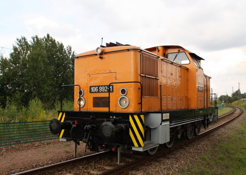 Die 106 078-9 war am 12.09.09 im ehemaligen BW Falkenberg oberer Bahnhof ausgestellt. Zur Zeit ist die Anlage nur an wenigen Tagen im Jahr zugänglich, hier soll aber in Zukunft ein Eisenbahnmuseum entstehen. Daniel T.