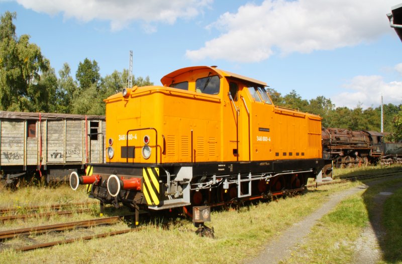 Die äuserlich aufgearbeitete steht 346 660-4 am 12.09.09 im ehemaligen BW Falkenberg oberer Bahnhof. Die Sammlung ist nur an wenigen Wochenenden im Jahr zugänglich, hier soll aber in naher Zukunft ein Eisenbahnmuseum entstehen. Daniel T.