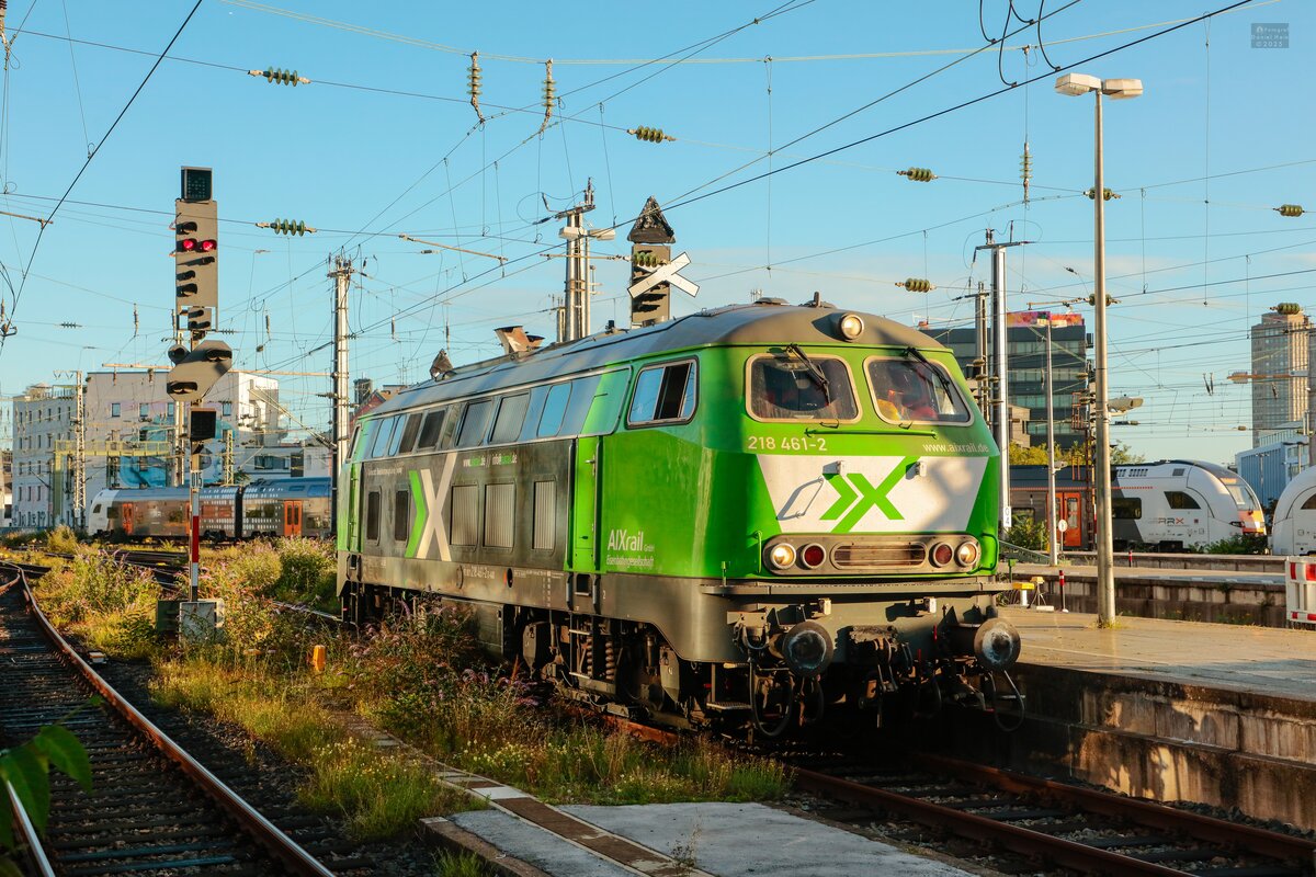 Bei regnerischem Wetter und widrigen Lichtverhältnissen fuhr am 22.10.2025 DB Museum 101 001 mit dem AKE Rheingold von Steinach in Tirol über Würzburg und Berlin nach Cottbus, während AIXrail 218 461-2 solo in Richtung Nürnberg unterwegs war. Die Maschinen begegneten sich am frühen Abend in Würzburg Grombühl. Matthias Kümmel