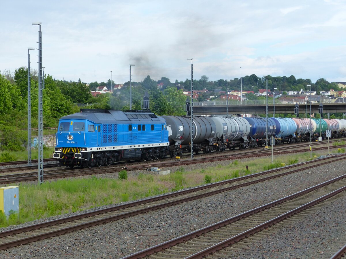Ludmilla "Blue Lady" von Traktion 4 Rent, 07-450 ( 9280 1233 450-6 D-TFR ) verlässt Gera mit Leergut in Richtung Großkorbetha am 22.5.2024 Mario Ulbricht