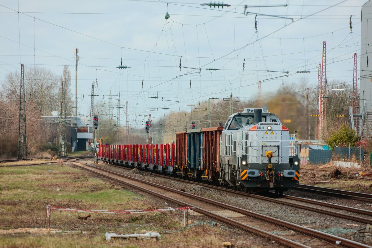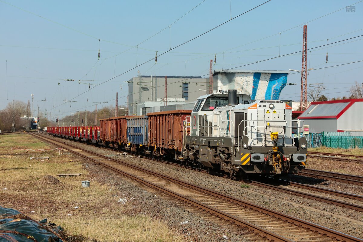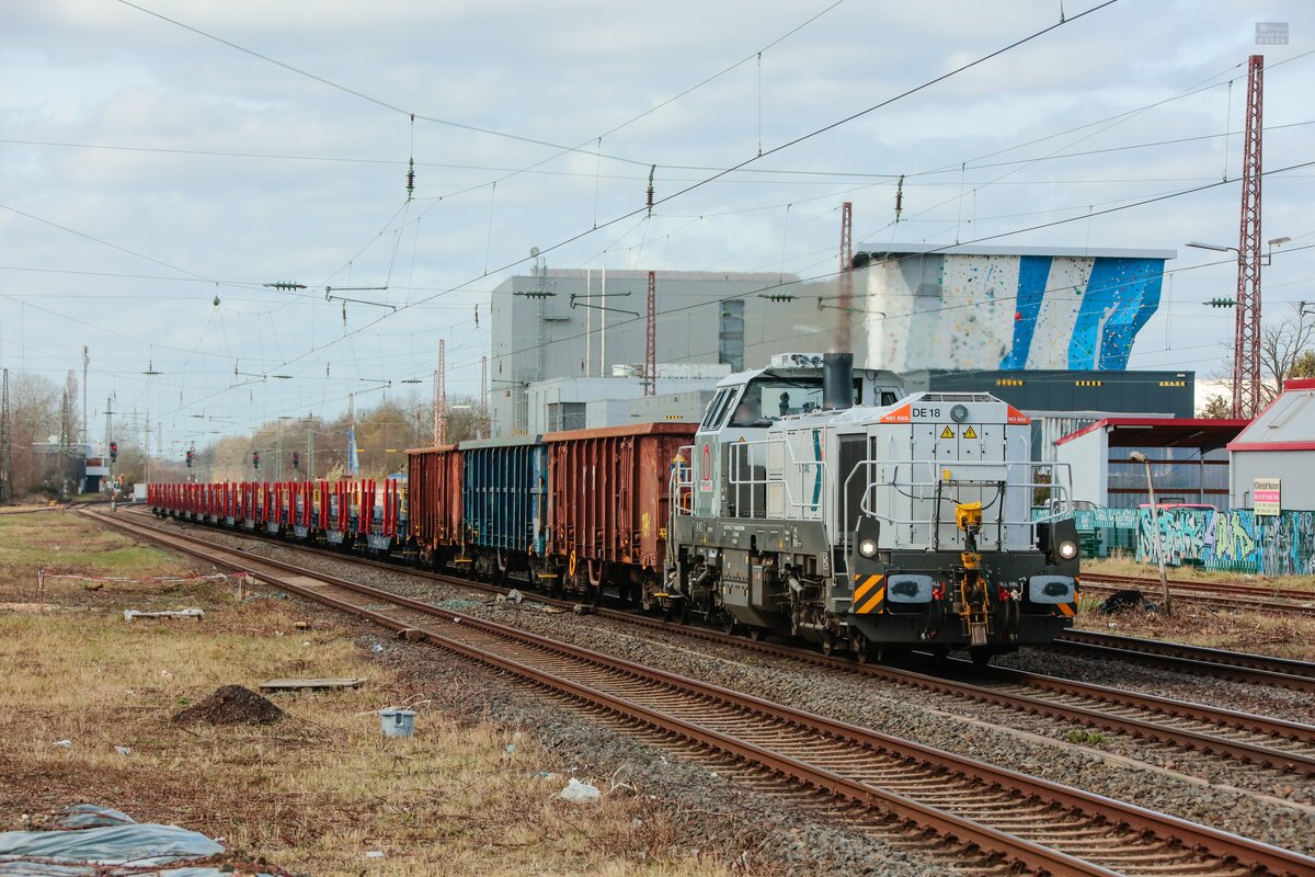 Generationenwechsel am Müllzug. Der EZK 53910 von Weiden nach Schwandorf wird seit einiger Zeit nicht mehr von einer V90 befördert. Eine DE 18 aus dem Hause Vossloh hat diese Aufgabe übernommen. Bei Nabburg hat der Zug bereits eine ordentliche Länge erreicht. Ein Teil der Wagen kommt direkt aus der Müllumladestation in Weiden, die restlichen Wagen wurden in Kulmbach und Bindlach beladen. Am 16. April 2025 gelang mir eine Aufnahme mit der Zuglok 4185 113 am Ufer der Naab. Leider trübte sich das Wetter immer mehr ein. Christoph Schneider