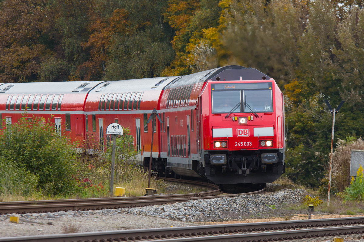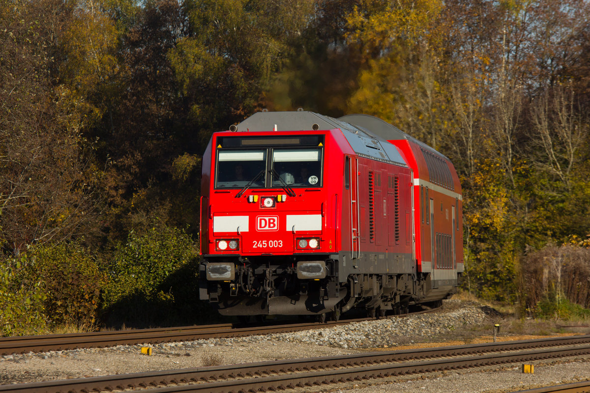 Interessanterweise riss am frühen Abend teilweise die Wolkendecke auf, aber nur für kurze Zeit. Einen Riss am Himmel konnte ich mit einer 245 (wahrscheinlich 245 014-6) am Rande Unterschwillachs bildlich festhalten. (29.10.16) Stephan Möckel
