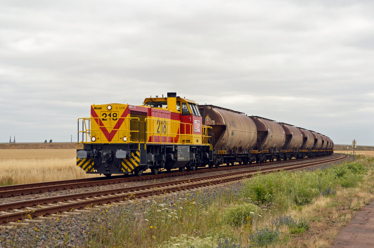 Am 29.05.22 führte 275 218 der MEG einen Silozug durch Braschwitz Richtung Köthen, wo der Zug auf die Strecke Richtung Bernburg abzweigt. Martin Schneider