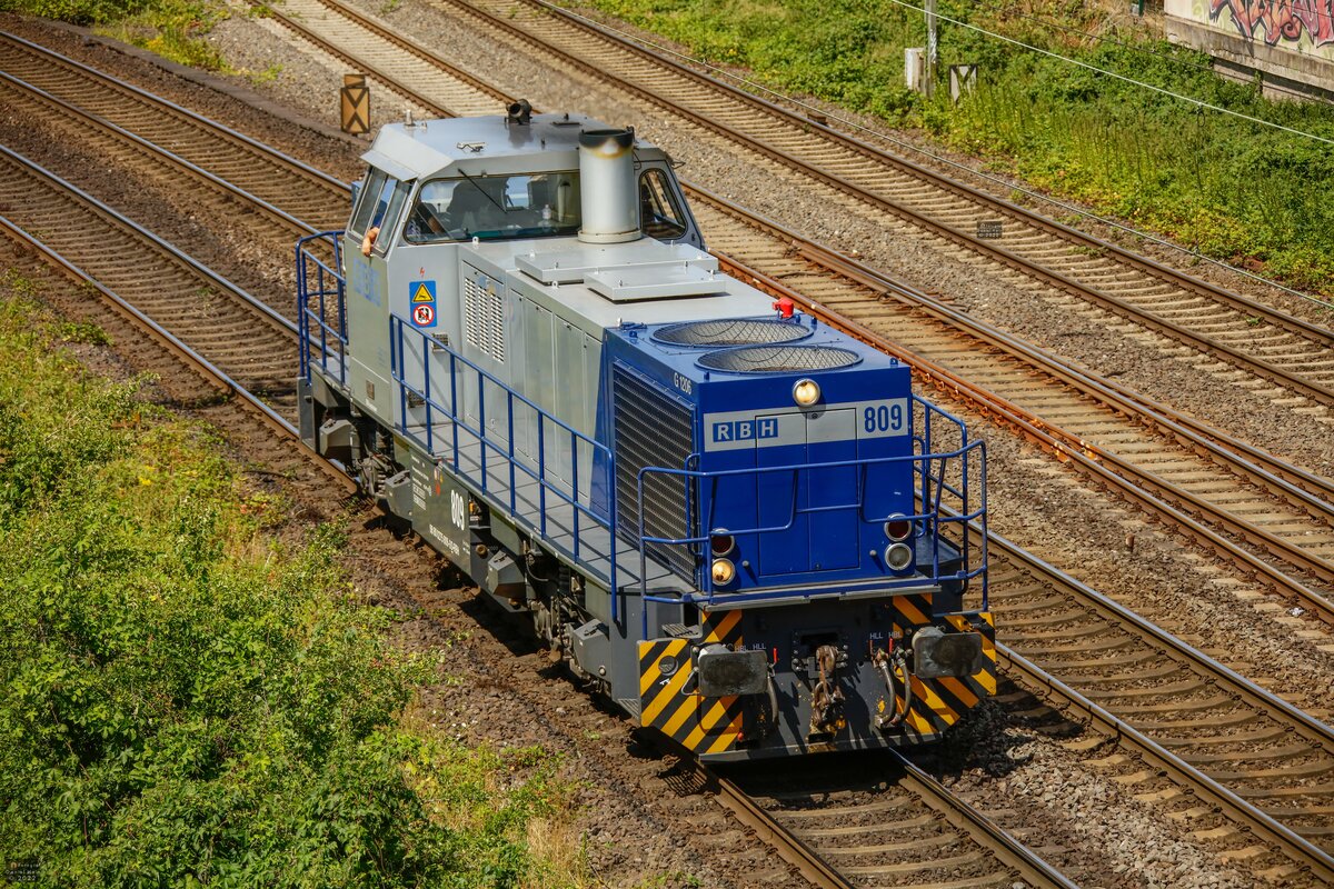 EVB - Eisenbahnen und Verkehrsbetriebe Elbe-Weser GmbH, Zeven [D] mit "275 503" [NVR-Nummer: 92 80 1275 503-1 D-EVB] mit einem Güterzug mit leeren Fahrzeugtransportwagen am 22.07.22 Durchfahrt Bahnhof Hamburg-Harburg. Lothar Stöckmann