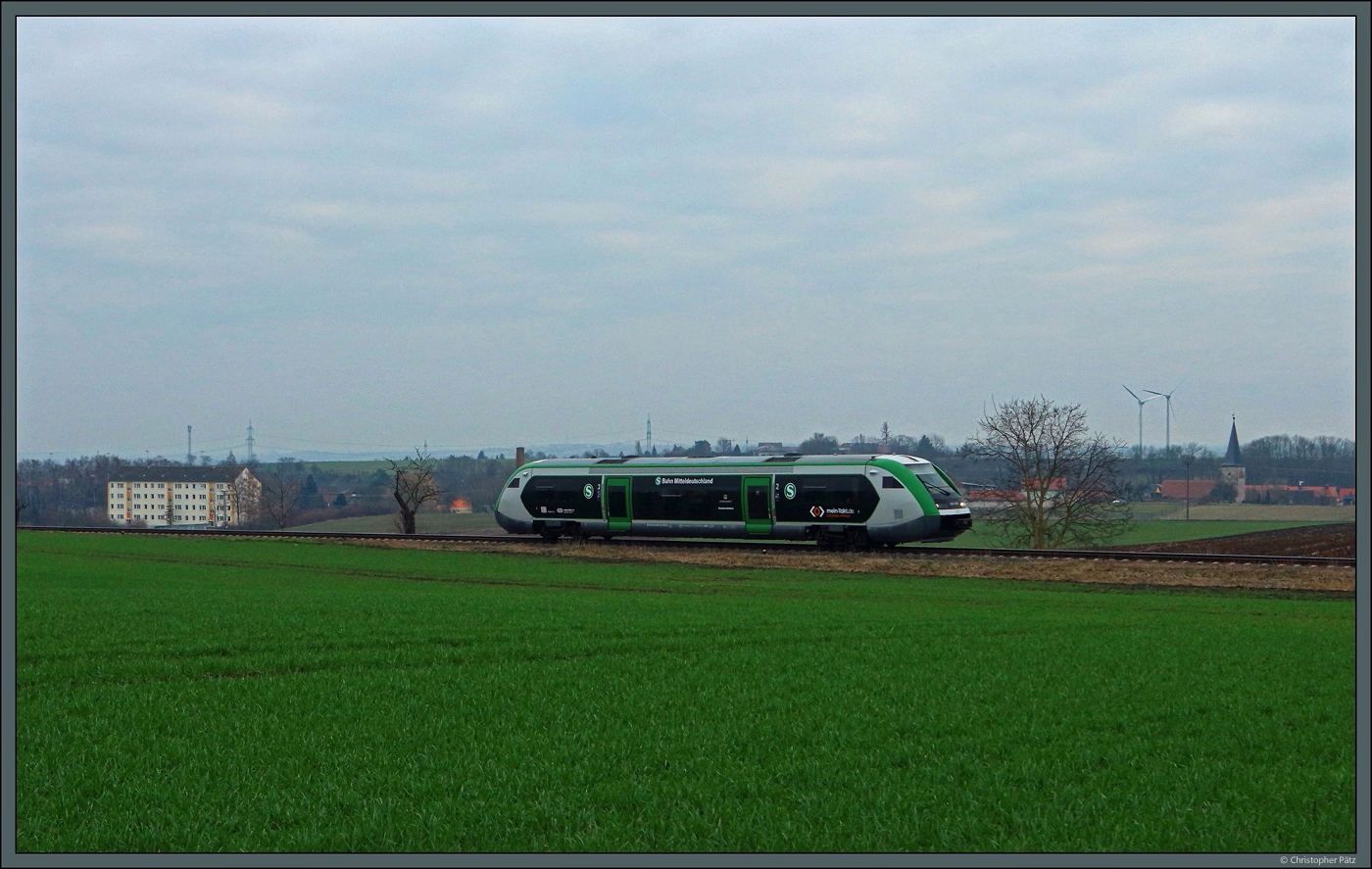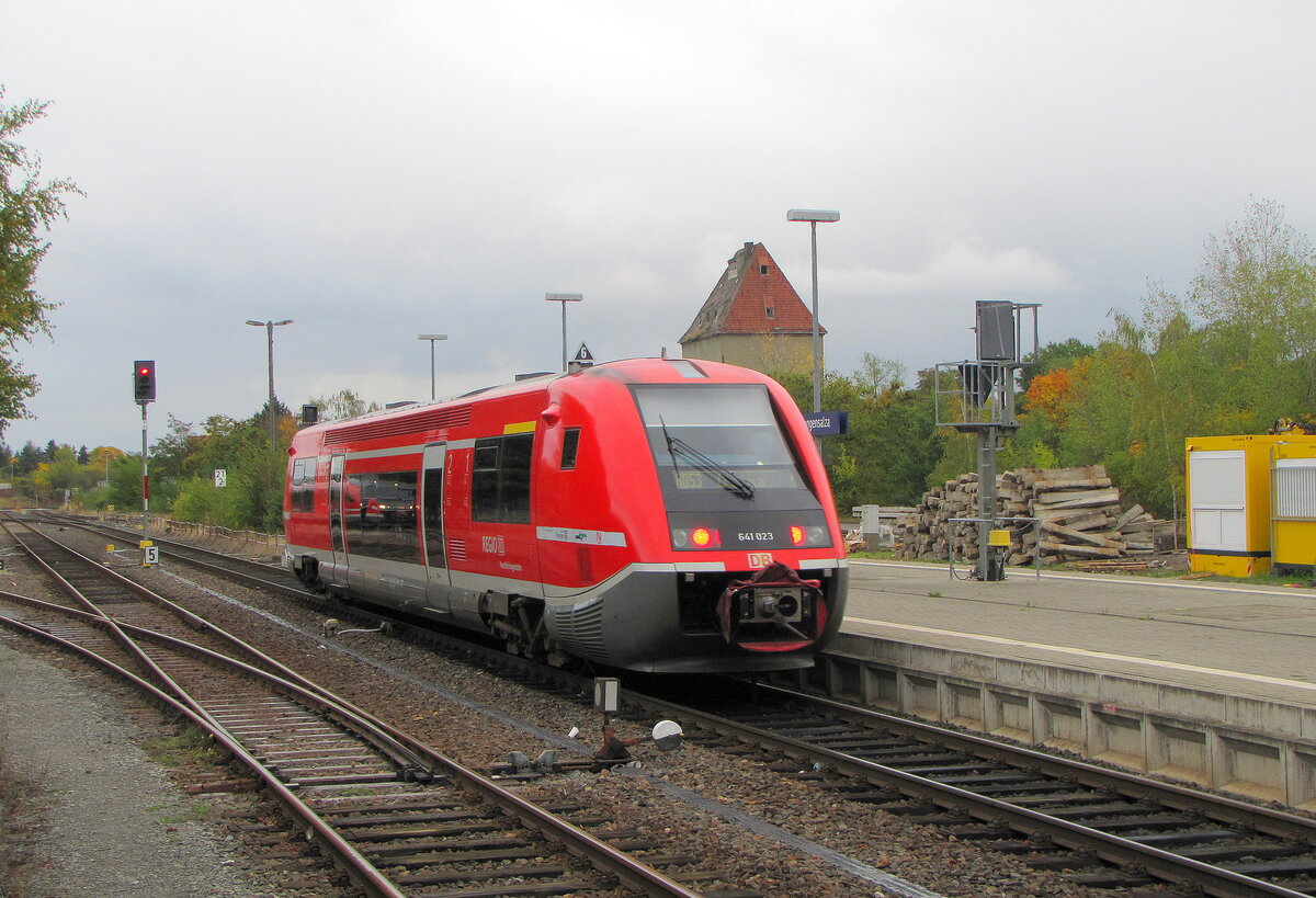 Blick am 26.03.2025 vom Bahnübergang in den Bahnhof Erfurt-Gispersleben, wo gerade der DB 641 021 als RB 16291 (Leinefelde - Erfurt Hbf) hält. Frank Thomas