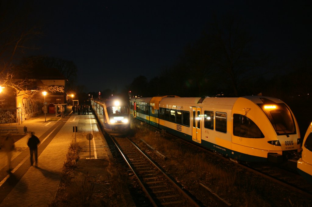 VT 564 der Märkischen Regiobahn an seinem letzten Arbeitseinsatz am 10.12.2011 auf der Strecke Jüterbog Berlin Wannsee hier im Startbahnhof Jüterbog Maik Nevermann