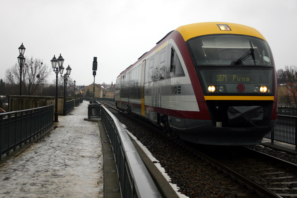 Ein Desiro der Städtebahn Sachsen kommt aus Richtung Neustadt über die Elbebrücke geschlichen und erreicht gleich den Endbahnhof Pirna; 12.12.2010 Daniel Miranda