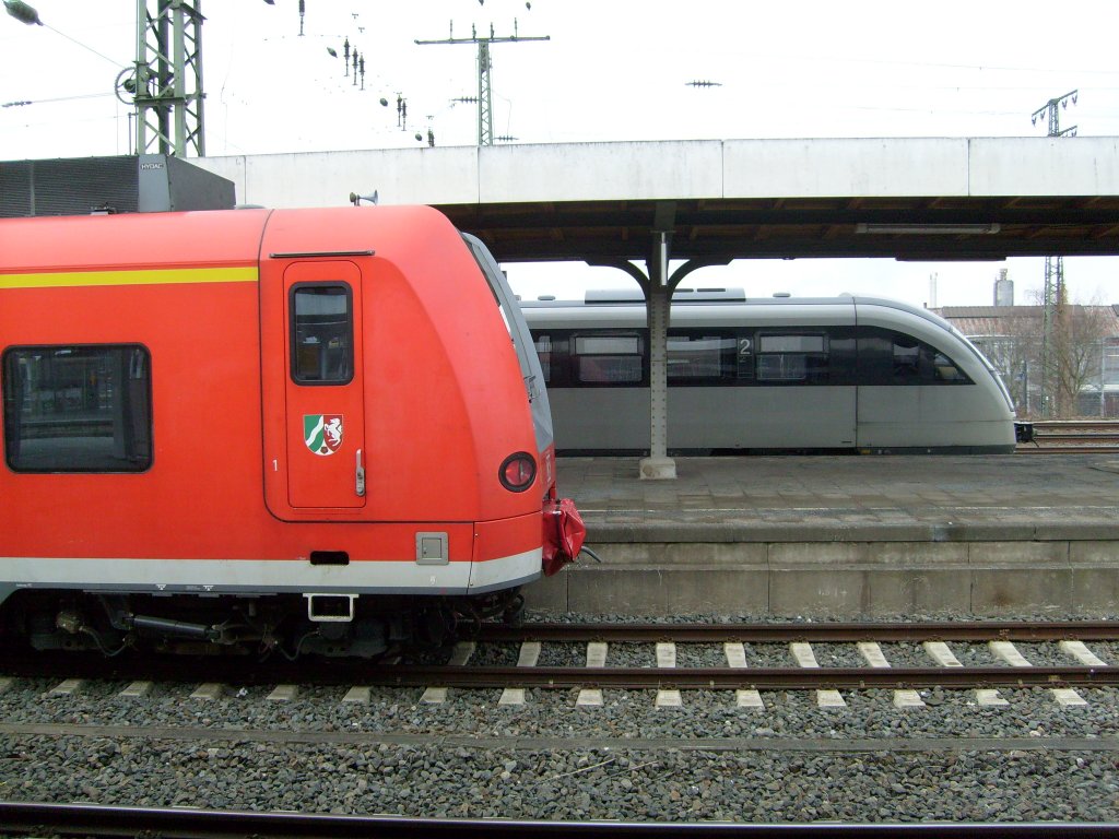 Hier mal ein Schnauzenvergleich von zwei Fahrzeugen im Eurobahnersatzverkehr. Hinter einer der weissen VT642 und vorne 426018 am 20.02 in Hamm. Stephan Eufinger