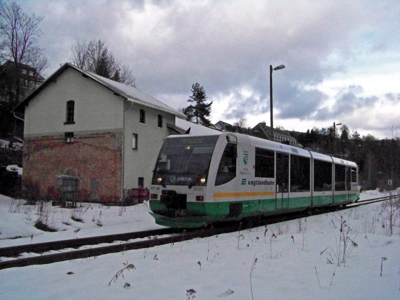 VT36, VT31 ("Stadt Klingenthal") und VT48 ("St. Ulrich Weischlitz") als VBG83119/83219 in Muldenberg-Floßplatz, 21.5.09. Wegen Himmelfahrt zu dritt.
