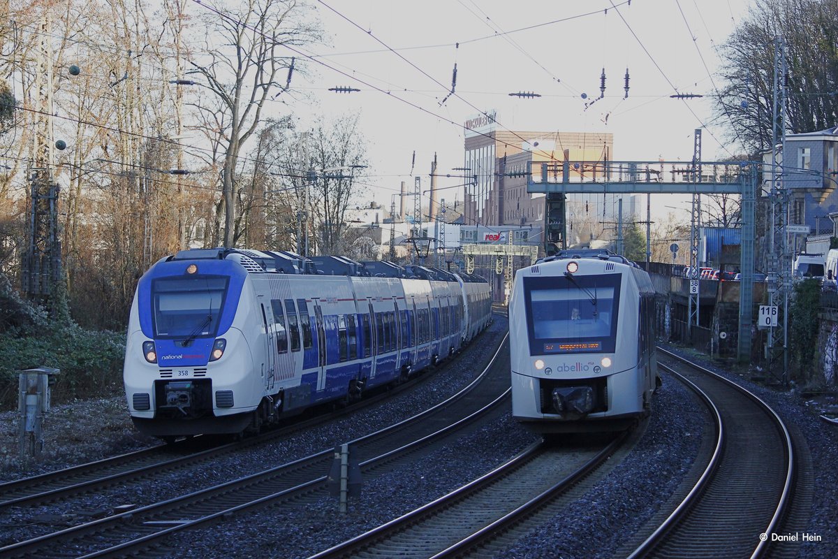 VT 12 11 02 von Abellio Rail fährt am 29.12.2015 in den Haltepunkt Bochum-Riemke ein. Auf dem Gegengleis entschwindet gerade der Gegenzug mit VT 12 11 03. Benedikt Dohmen