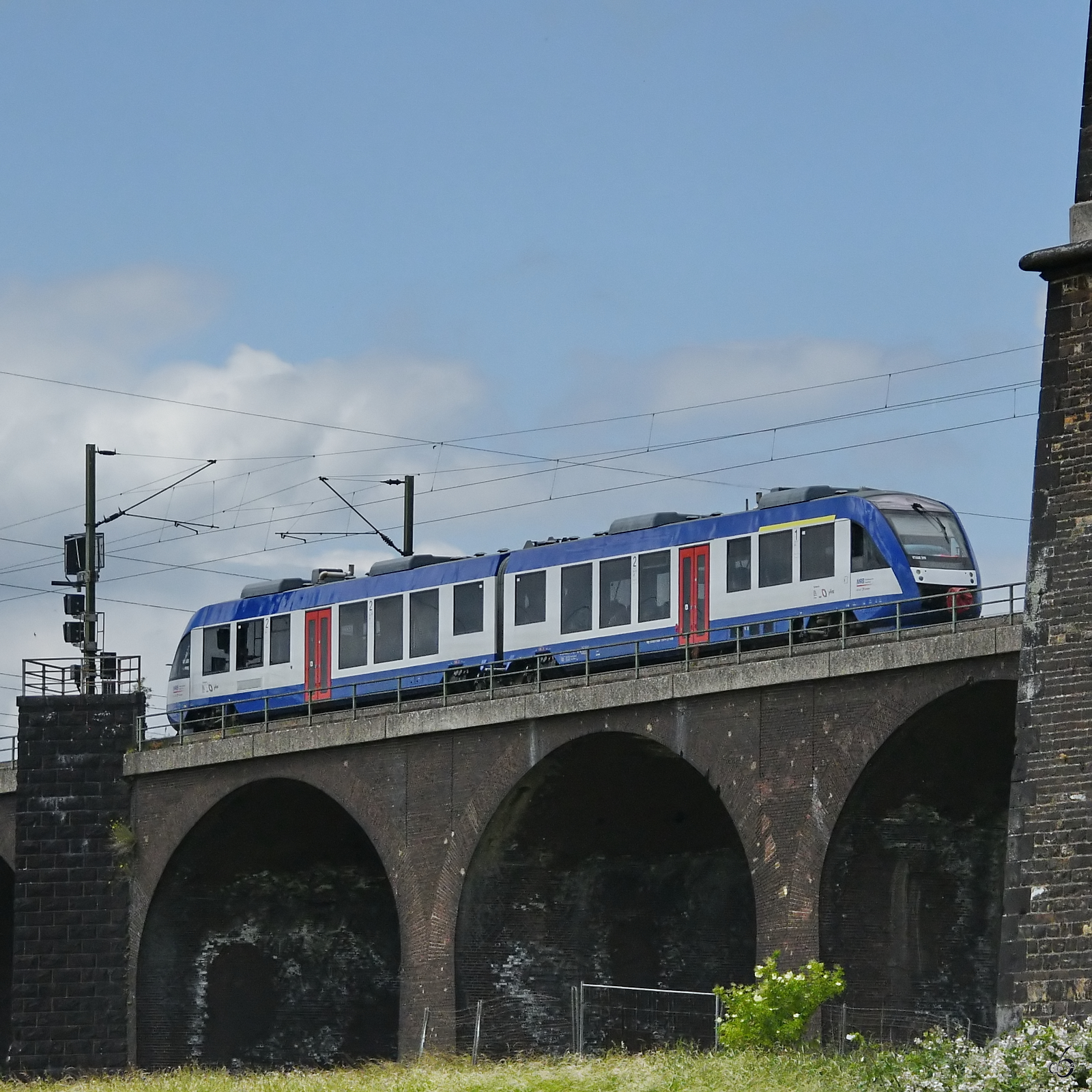 Ende September 2025 wurde auf der Linie RB31 der Dieseltriebzug VT119 (648 004) eingesetzt, hier abgelichtet auf der Duisburg-Hochfelder Eisenbahnbrücke.