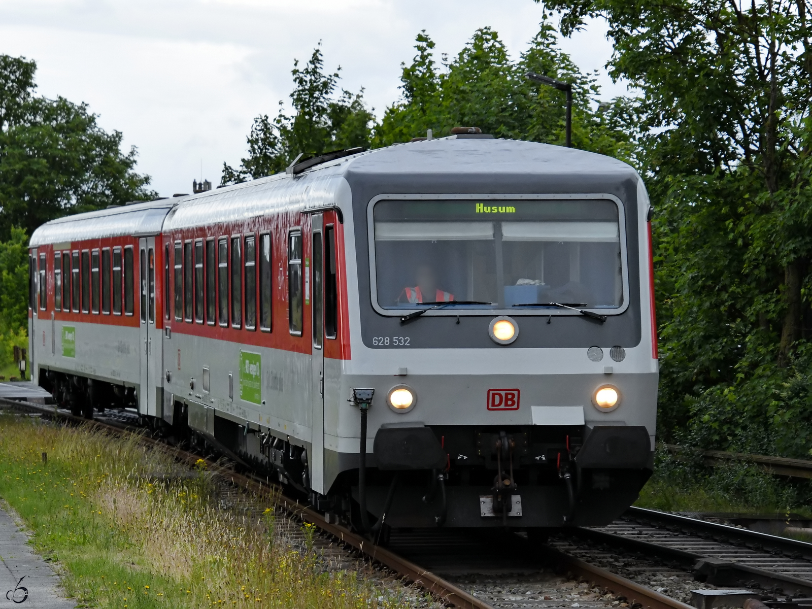 Ja wo bleiben sie denn, die Fahrgäste - der Dieseltriebzug 628 532 "Munkmarsch" steht abfahrbereit am Bahnsteig. (Niebüll, Juni 2024) Christian Bremer