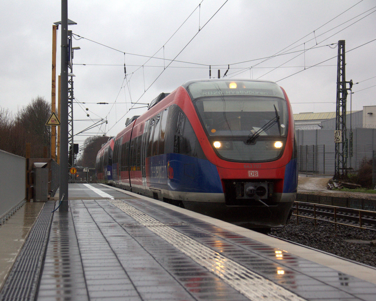 Die Euregiobahn (RB20) kommen aus Stolberg-Rheinland-Hbf nach Stolberg-Altstadt,Düren und kammen die Kohlscheider-Rampe hoch aus Richtung Herzogenrath und halten in Kohlscheid und fahren in Richtung Richterich,Laurensberg,Aachen-West,Aachen-Schanz,Aachen-Hbf,Aachen-Rothe-Erde,Aachen-Eilendorf,Stolberg-Hbf(Rheinland).