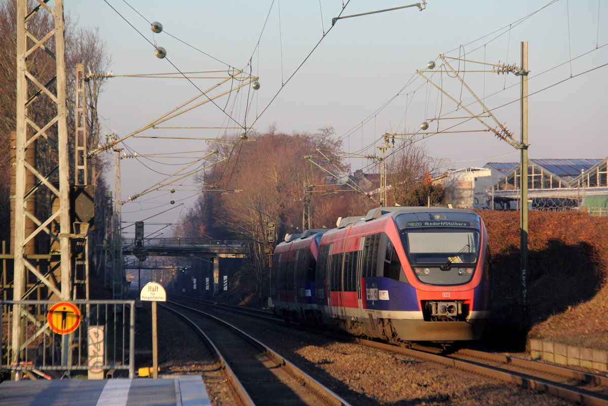 Die Euregiobahn (RB20) kommt aus Alsdorf-Annapark nach Stolberg-Altstadt,Langerwehe und kammen die Kohlscheider-Rampe hoch aus Richtung Herzogenrath und hilten in Kohlscheid und ffuhren in Richtung Richterich,Laurensberg,Aachen-West,Aachen-Schanz,Aachen-Hbf.