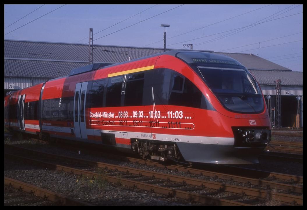 VT 643570 am 26.6.2001 vor der Triebwagenhalle des HBF Osnabrück. Der Zug trägt eine Euregio Werbung und wird nicht eigentlich im Münsterland eingesetzt. Gerd Hahn