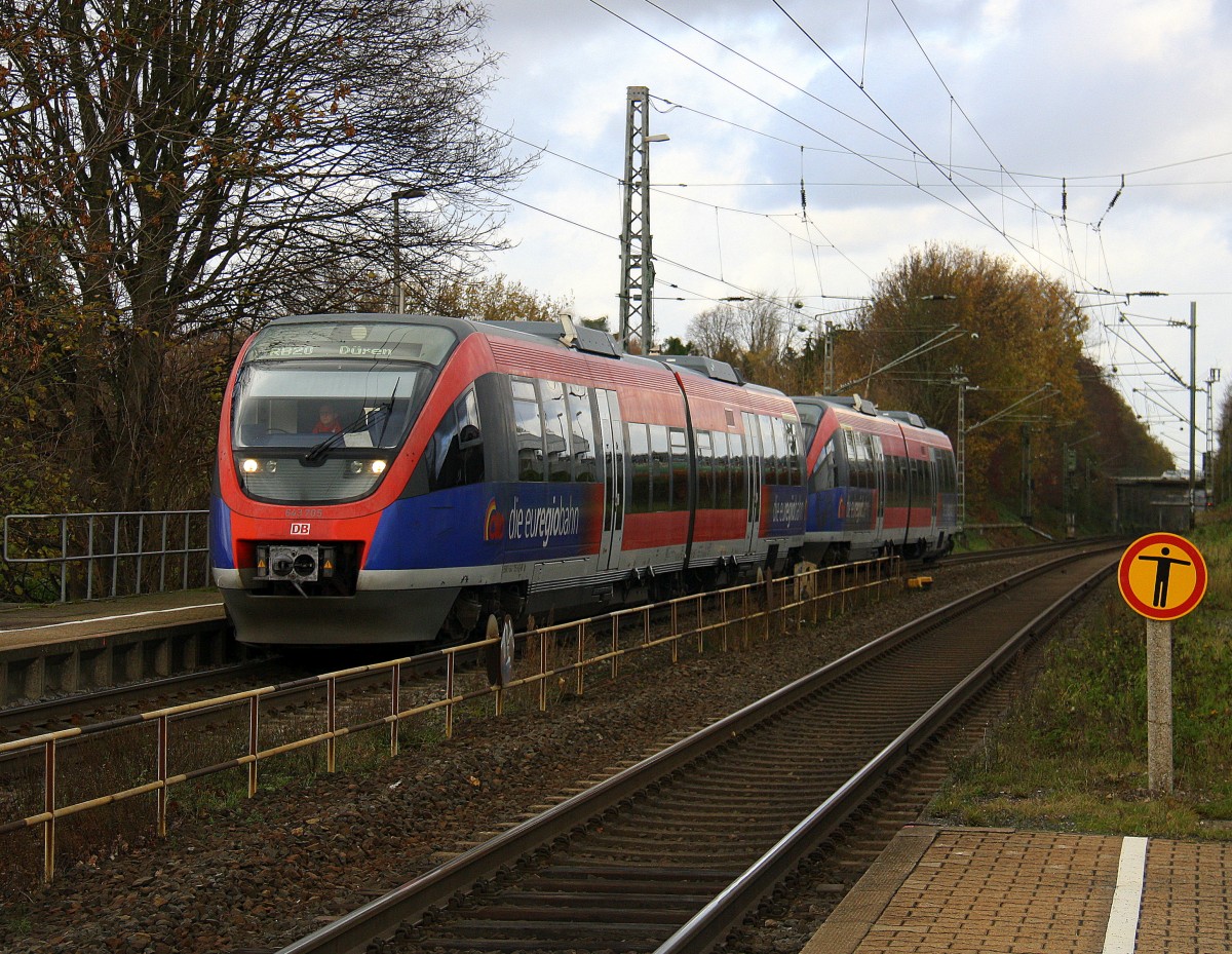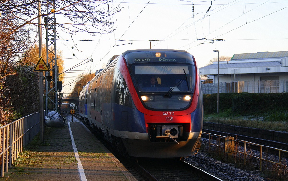 Die Euregiobahn (RB20) kommt aus Eschweiler-St.Jöris nach Düren aus Richtung Herzogenrath,Kohlscheider-Bahnhof und fährt in Richtung Richterich,Laurensberg ,Aachen-West,Aachen-Schanz,Aachen-Hbf.