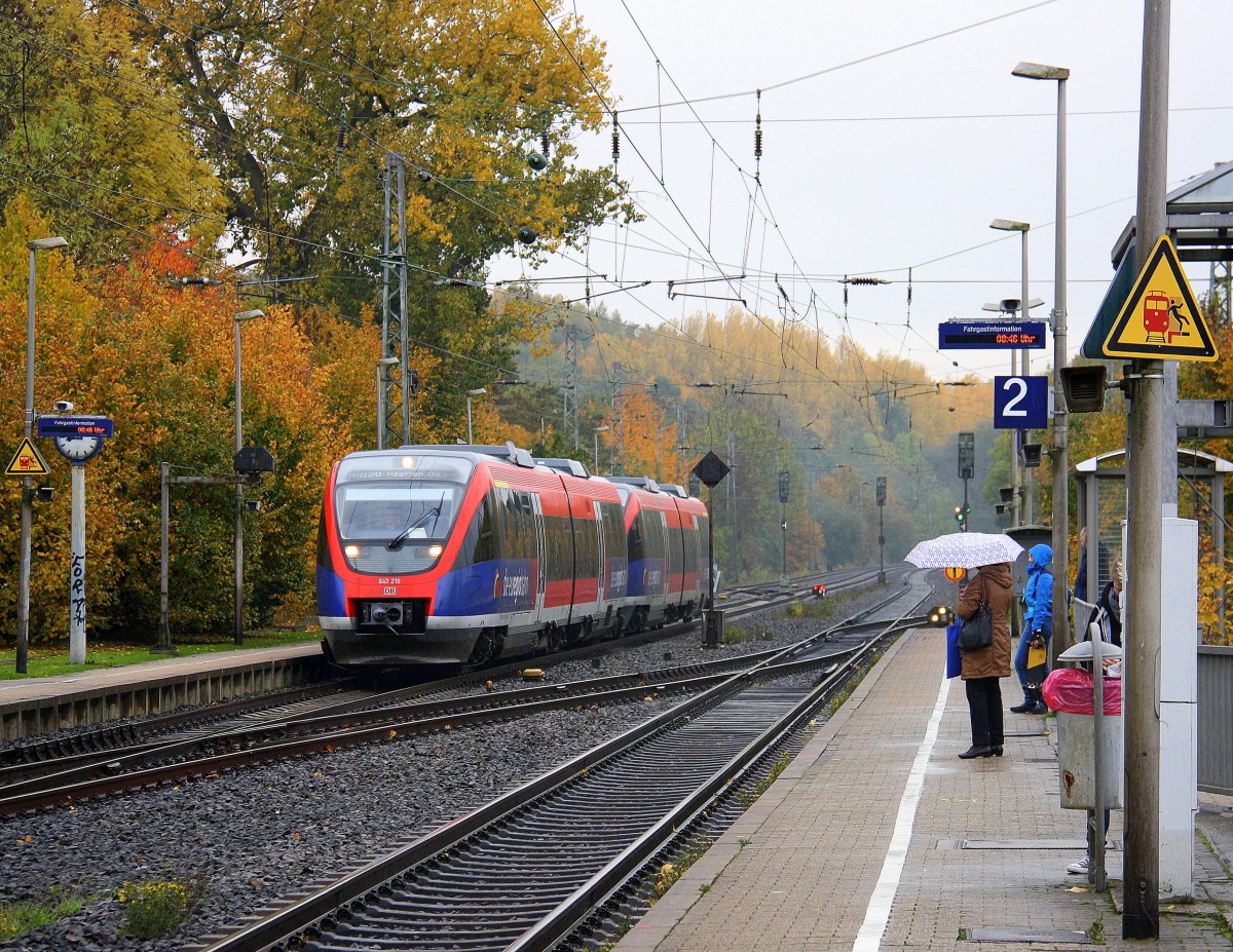 Während 442 802 als RE3 dem Aachener Hbf entgegen strebt, setzt 643 210 als RB20 seinen Weg in Richtung Stolberg-Altstadt fort. Aufgenommen am 29/08/2015 vom Bahnsteig in Eilendorf. Dieter Schumacher