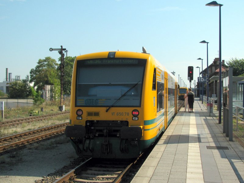 Ein Ort der ODEG - Beeskow, im Vordergrund die OE 36 nach Frankfurt/Oder und im Hintergrund der Gegenzug nach Berlin-Schöneweide, so gesehen beim längeren Betriebshalt am 28.08. Alexander Wiemer