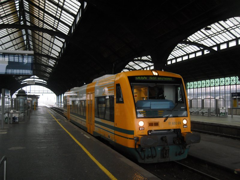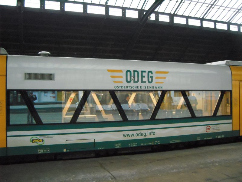 Das Logo der "Ostdeutschen Eisenbahn GmbH" (ODEG) auf einem VT 650 im Görlitzer Bahnhof. Erst seit dem 14.12.2008 sind diese und die VT 642 der ODEG in Görlitz anzutreffen.