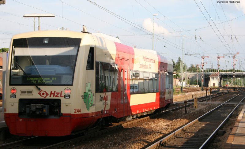 Aufgrund einer Gleisänderung stehen die RegioShuttle VT 47 + VT xx als Hzl 85933 nach Stockach auf dem, im alltäglichen Betrieb kaum genutzten, Gleis 2 statt 1 in Radolfzell. 02.05.08 Markus Kirchmann
