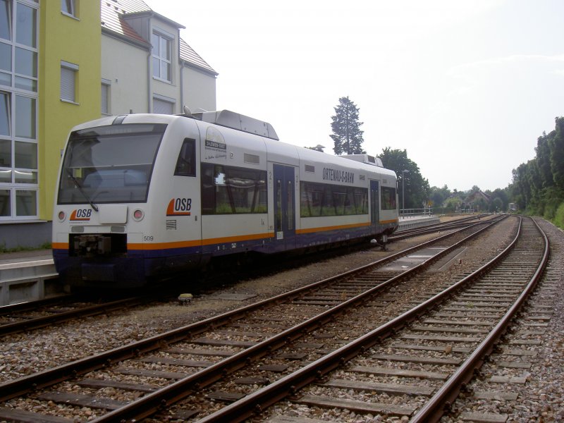Ein Regioshuttle der Ortenau-S-Bahn fährt von Offenburg in Richtung Kehl/Strasburg. Hier fotografiert im Bahnhof von Kehl. Das Bild entstand am 24. April 2006. Stefan B.