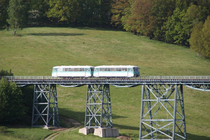 Das Ferkeltaxi 772 367 hat´s ins Erzgebirge verschlagen. Mit ihm kann man zB über den Markersbacher Viadukt fahren und die Aussicht geniesen, 21.05.09 Kai Gläßer