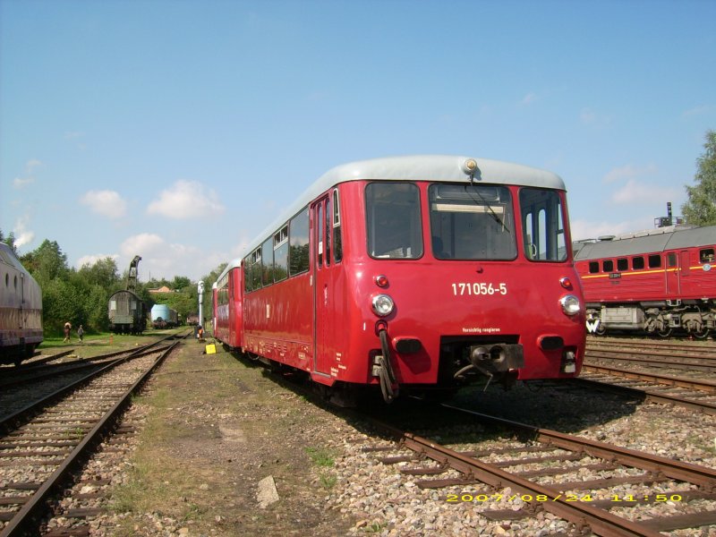 Am 24.08.07 stehen am 3 Ferkeltaxen der Baureihe 171 mit 171 056 an der Spitze im Bw Chemnitz-Hilbersdorf anl�sslich des Heizhausfestes. Martin Schneider