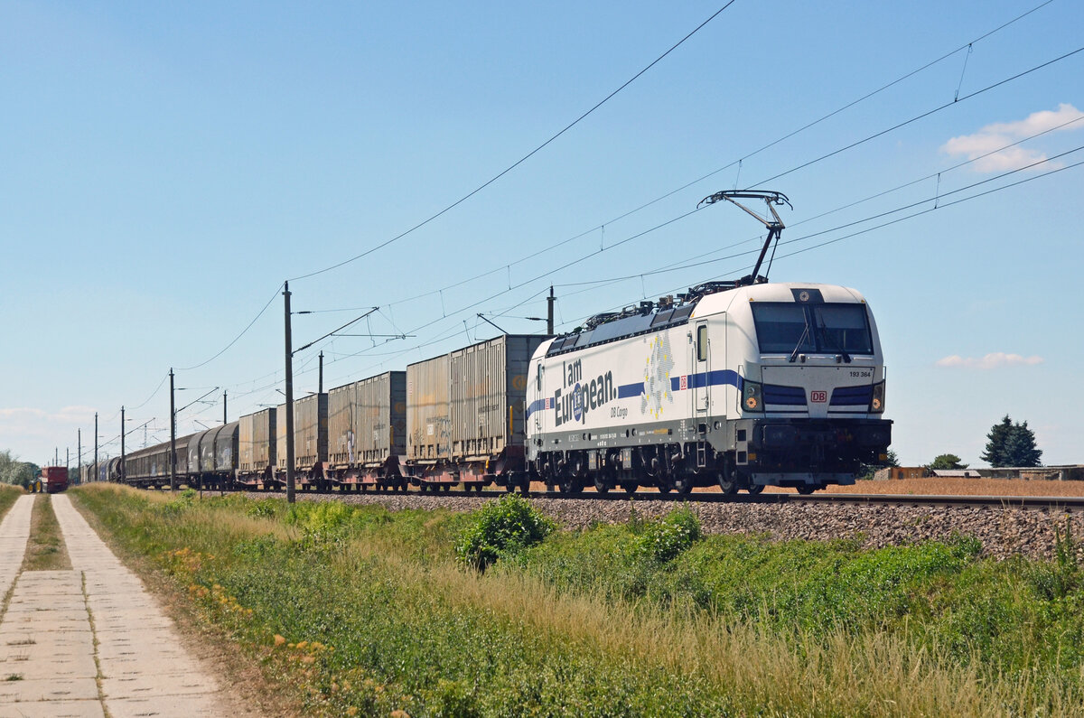 193 364 bespannte am 28.06.22 einen gemischten Güterzug vom Rbf Halle(S) nach Tschechien. Hier rollt der Werbe-Vectron durch Khyna Richtung Delitzsch. Martin Schneider