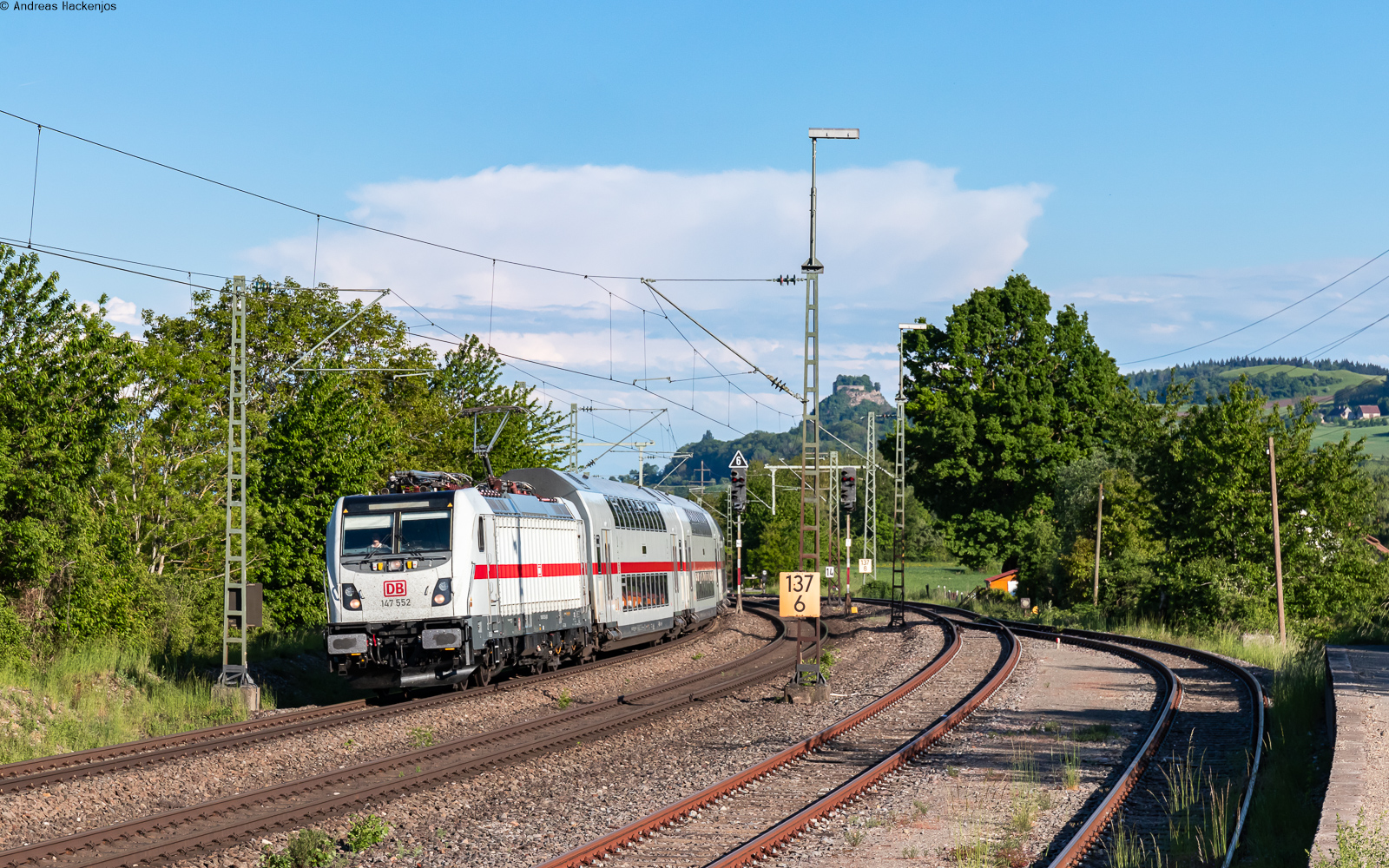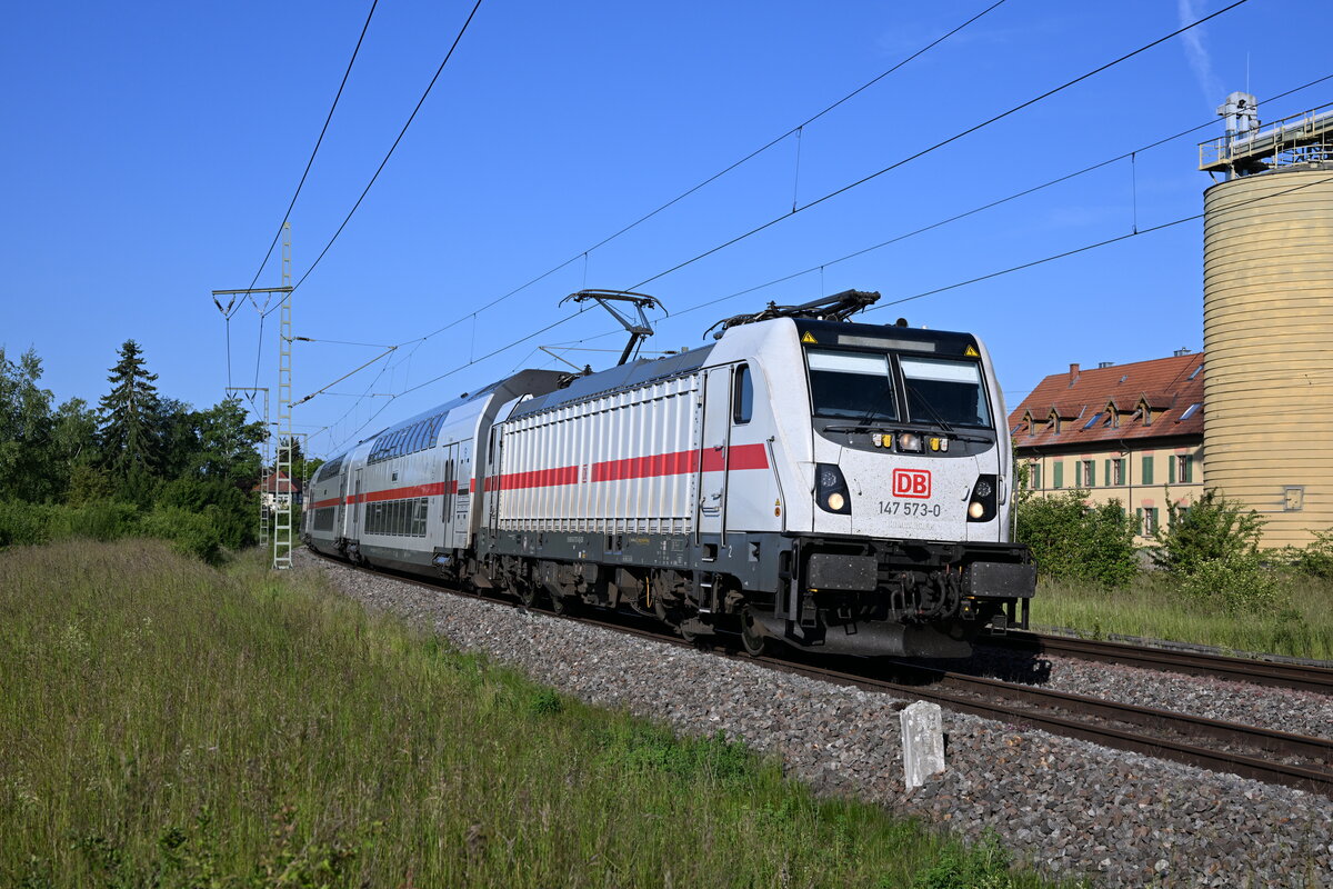 IC2 mit 147 583-9 nach der verspäteten Durchfahrt des Bahnhofs Großkorbetha.
