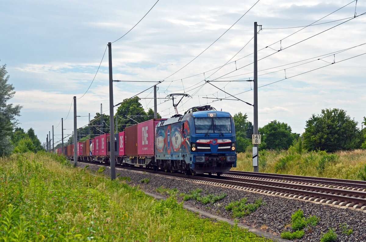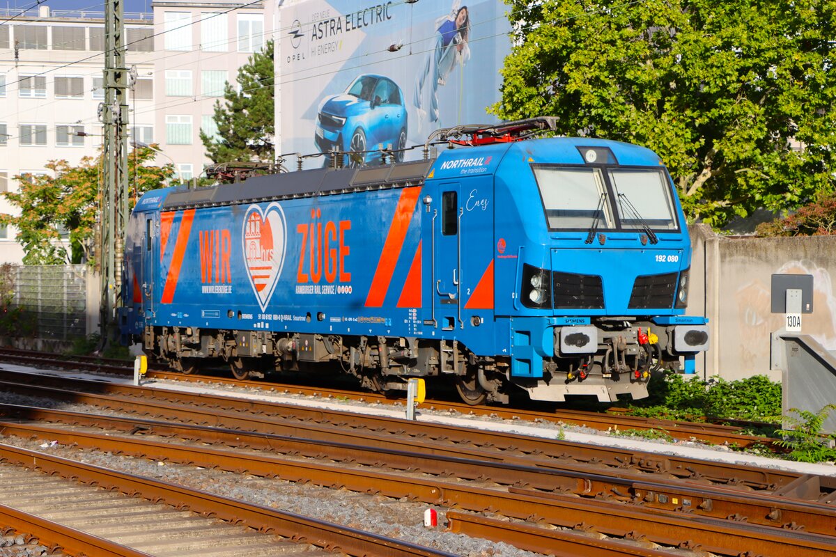 BR 192 009 D-NRAIL (Vermietet an TXLogistik AG) mit Containern bei der Durchfahrt Weddel (b.Braunschweig) Richtung Magdeburg/Wolfsburg. 9.August 2025 Dominik Kloepfer
