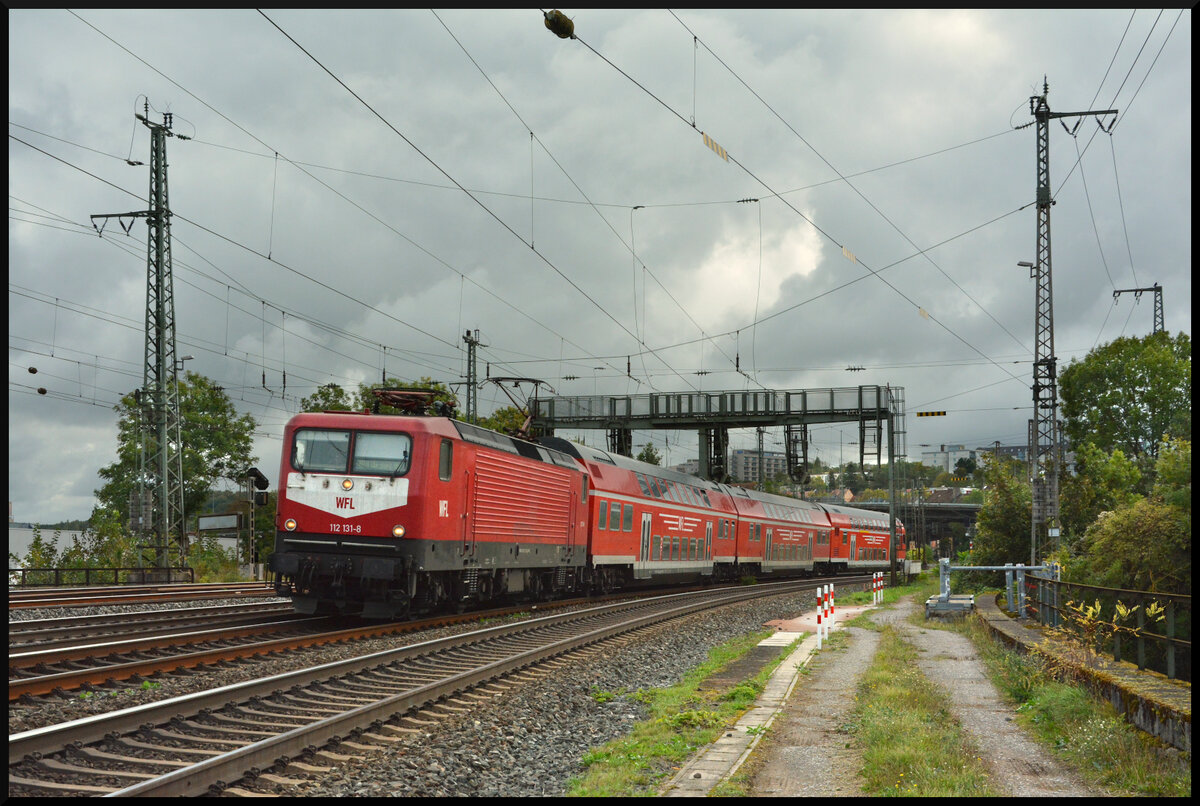 Drei Tage vor Ende des RE80-Ersatzverkehrs Treuchtlingen - Würzburg kommt WFL 112 131 mit ihren exDR-Dostos am 28.09.2024 in Würzburg an der Signalbrücke Ost um die Kurve. Matthias Kümmel
