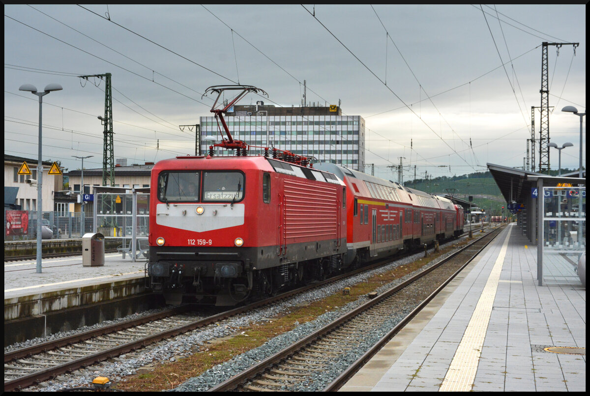 WFL 112 159-9 und 112 131-8 starten am 16.09.2024 mit einem RE80 Ersatzzug in Würzburg nach Treuchtlingen. Mein Gruß geht hiermit an den Lokführer in traditioneller Eisenbahneruniform zurück. Danke für den Pfiff! Matthias Kümmel