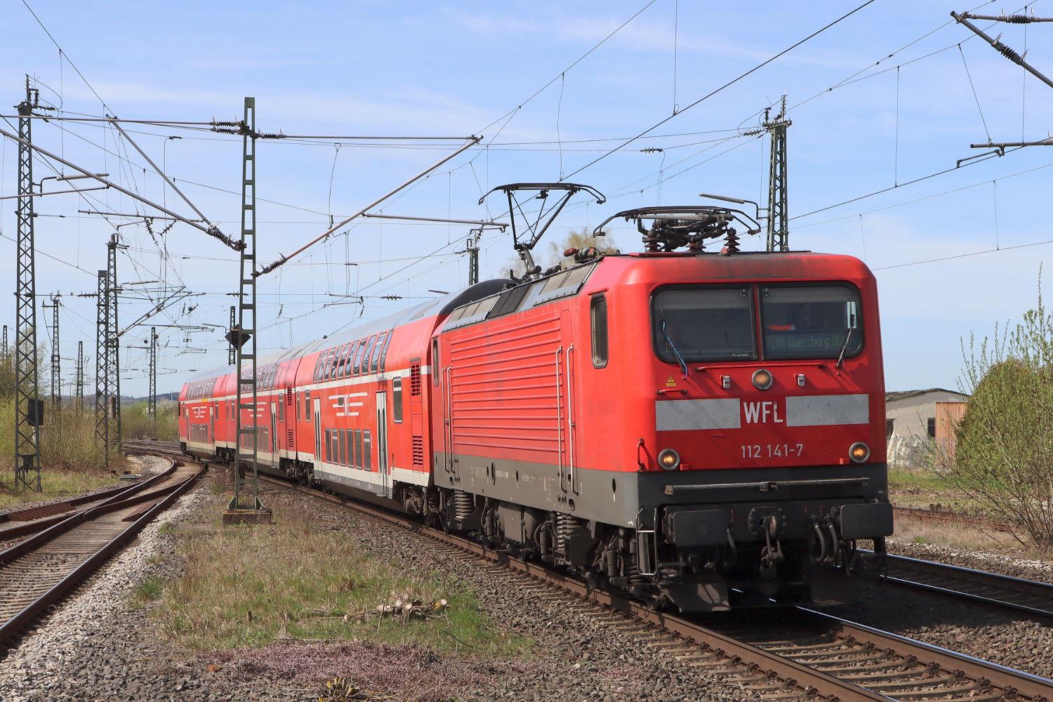 Die Reichsbahn in Treuchtlingen? Nicht ganz, Wedler Franz Logistik - kurz WFL - fuhr am 26. März 2024 - und weiter bis mindestens Ende März - Leistungen zwischen Treuchtlingen und Würzburg im Auftrag der Go Ahead Bayern (zur ÖBB-Gruppe gehörend!). Tatsächlich handelt es sich bei Lok 112 024 und den Doppelstockwaggons um Fahrzeuge, welche die ehemalige Reichsbahn der DDR beschafft hat. Lokomotiven der DR-Baureihen 112.1 und 143 kamen aber nach der Wende bis etwa 2010 regelmäßig nach Treuchtlingen.