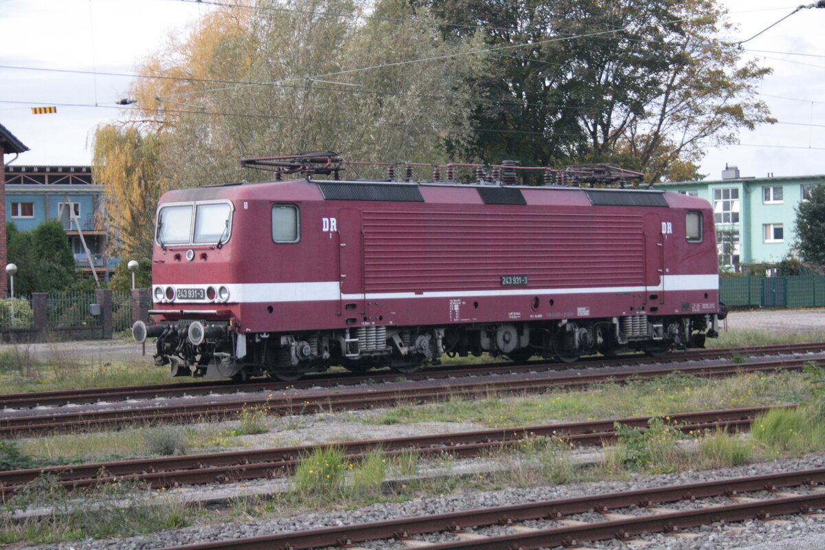 Nachschuss im Bahnhof Bitterfeld auf 143 020-6, die als Tfzf auf Gleis 2 in nördlicher Richtung unterwegs ist.