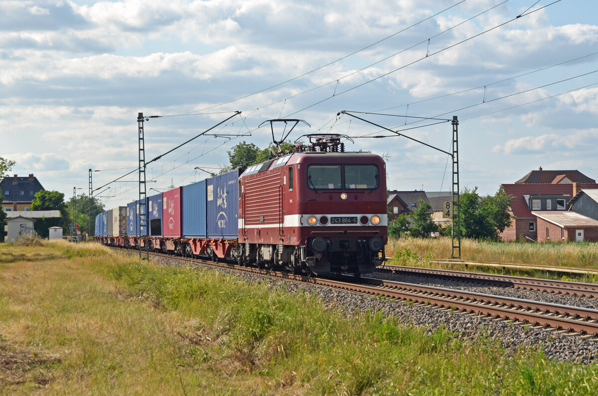 Delta Rail führte mit 243 864 am 19.06.25 einen Containerzug durch Jütrichau Richtung Roßlau. Ziel war der Grenzbahnhof Frankfurt(O). Martin Schneider