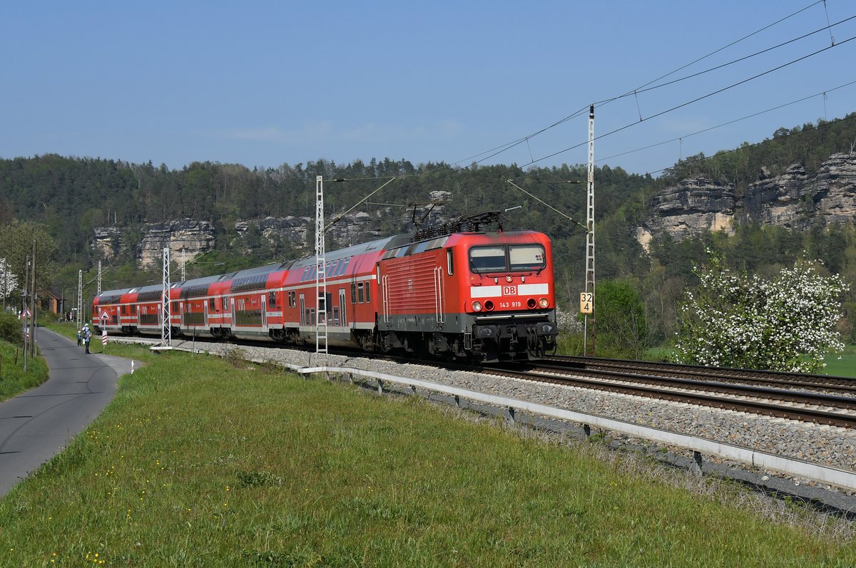 143 957-9 beim Halt im Hp Halle-Silberhöhe.