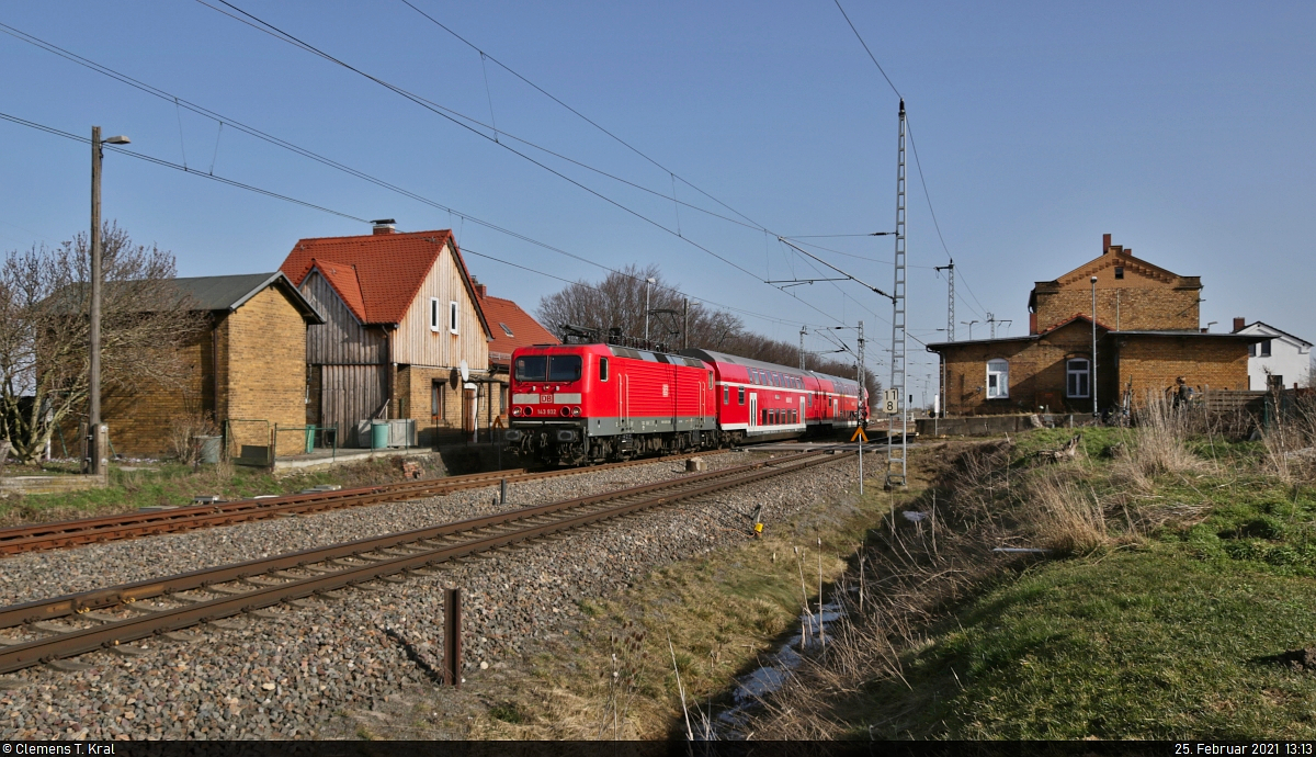 143 591-6 erreicht den Hp Peißen auf Gleis 2.
