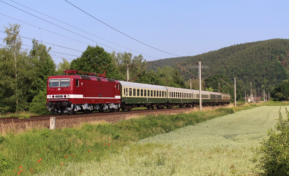 243 005-6 fuhr am 22.06.19 von Erfurt nach Sonneberg zum Tag der offenen Tür bzw 70 Jahre Piko. Hier ist der Zug bei Remschütz zu sehen. Alexander Hertel