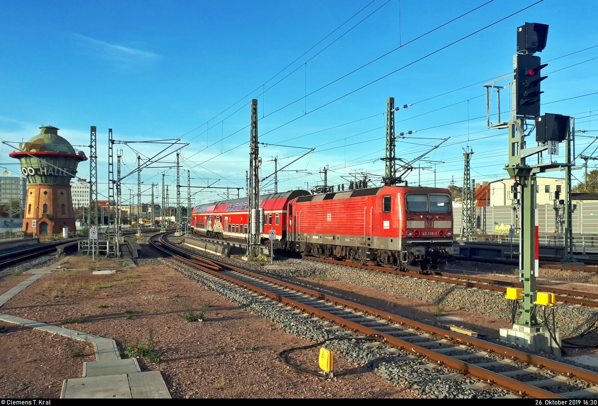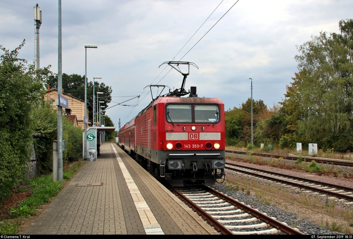 Hier steht 143 350-7 von DB Regio Südost als S3 nach Halle(Saale)Hbf im Startbahnhof Halle-Trotha auf Gleis 1.