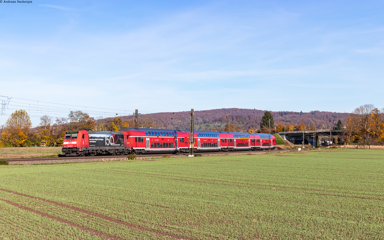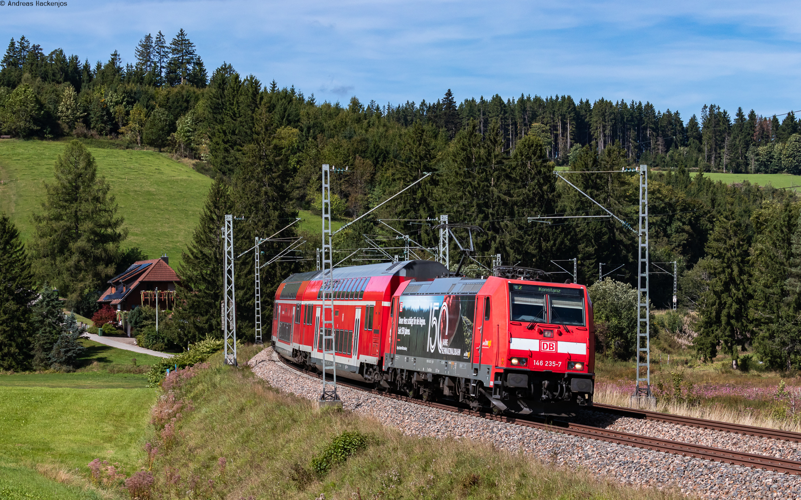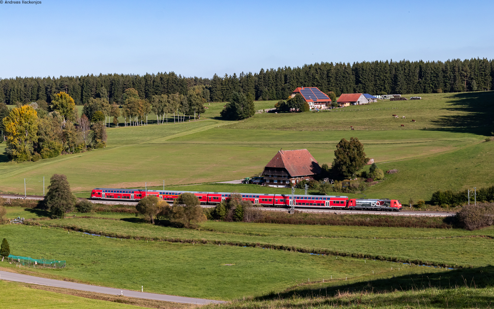 Gleich zwei Werbeloks der S-Bahn Dresden rollten am 02.10.25 durch Braschwitz Richtung Halle(S). 146 021 und 146 013 werden wohl zur Fußpflege in Rothensee gewesen sein.