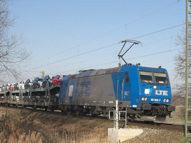 Die 185 528-7 der "LTE" mit Autozug unterweg in Richtung Salzburg.