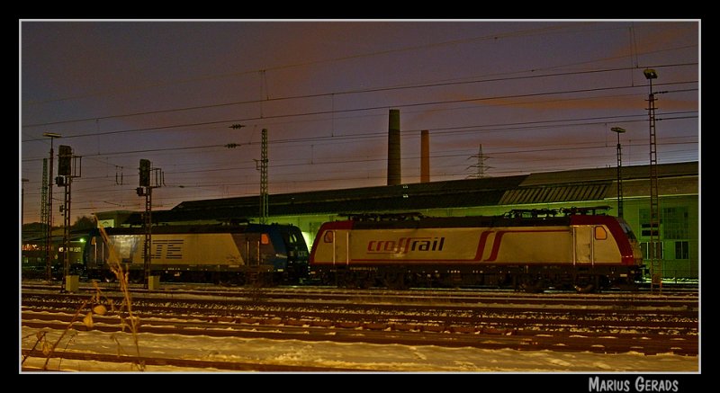 Das Objekt der Begierde: 185 556 der MRCE. Als ich von Arbeit kam stand sie noch nicht aufgerüstet da. Als ich ankam war sie bereits "abfahrbereit" aufgreüstet. Martin Schneider