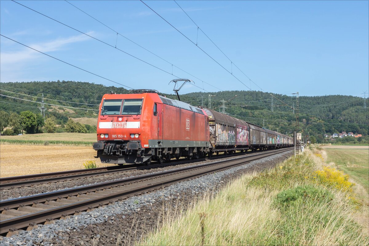 185 153-4 mit einem gemischten Güterzug bei Reilos am 26.08.2025.