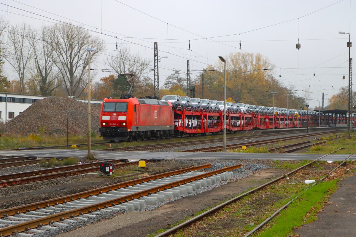 Der Elbtalumleiter aus Nymburk nach Osnabrück über das Vogtland ab Hof mit der DB 185 056. Aufgenommen wurde der Autozug bei Oberjößnitz unweit der Einfahrt Plauen am 06.11.2025